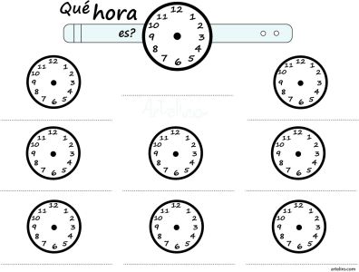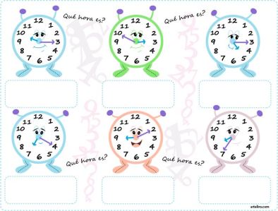 En este espacio encontrarás ilustraciones para enseñar la hora. Descarga los ejercicios que puedan ser de utilidad para tus clases!